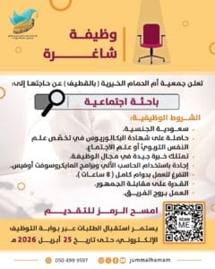 إعلانات *💠 تعلن جمعيّة أمّ الحمام الخيريّة، عن حاجتها لشغل وظيفة:* اقرا المزيد » أبريل 13, 2026 لا توجد تعليقات