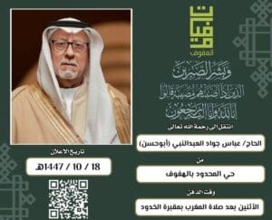 قسم الوفيات انْتَقَلَ إِلَى رَحْمَةِ اللهِ تَعَالى : السيد زكي السيد علي آل ابراهيم اقرا المزيد » أبريل 2, 2026 لا توجد تعليقات