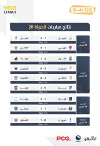 اختتمت الجمعة منافسات الجولة الثامنة والعشرين من دوري يلو لأندية الدرجةالأولى للمحترفين، والتي شهدت استمرار الصراع المحتدم في مقدمة الترتيب،وتغييرات مؤثرة في مراكز الوسط وقاع الدوري.
