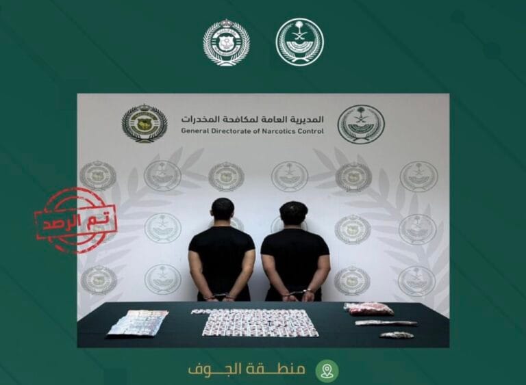 ألقت المديرية العامة لمكافحة المخدرات القبض على شخصين في منطقة الجوف لترويجهما مادة الحشيش المخدر وأقراصًا خاضعة لتنظيم التداول الطبي، وذلك ضمن جهودها المستمرة في مكافحة آفة المخدرات وتعقب مروجيها.