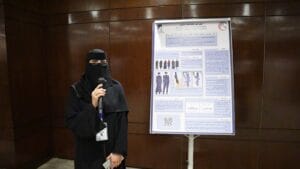 اما الجلسة العلمية الثالثة، المخصصة لعرض الملصقات العلمية، قُدمت أفكار إبداعية متنوعة، من بينها ملصق علمي للدكتورة فاطمة عبد الله محنش الشهري حول أزياء مبتكرة لدعم أطفال السكري، ودراسة للدكتورة حنان عبد الله آل غظيف القحطاني حول توظيف الطباعة الرقمية في تطوير ملابس السباحة، إضافة إلى مشروع تصميم عباءة نسائية قابلة للتحول لخدمة رياضة الفروسية قدمته الدكتورة جميلة ظاهر مشرف الشهري. كما نوقشت أبحاث أخرى حول تجربة زوار المتاحف وتوظيفالتقنيات الذكية في التوجيه داخل المباني العامة.