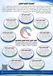 واختُتم المؤتمر بعدد من التوصيات العلمية التي أكدت أهمية تعزيز دور الفنون والتصاميم في تحسين جودة الحياة، وتكامل التخصصات لتطوير حلول ابتكارية، وتبني مفاهيم الاستدامة، ودمج الاعتبارات الإنسانية والسلوكية في البيئات المصممة،وتطوير بيئات تفاعلية تعتمد على الحواس وذكاء البيئة، مع توظيف تقنيات الذكاء الاصطناعي والواقع الافتراضي بما يحفظ الهوية والحرف اليدوية، ووضع أطر أخلاقية لاستخدام التقنيات الحديثة، وتعزيز دمج التراث في التعليم، وبناء شراكات محلية ودولية تدعم الابتكار والاستدامة وتسهم في تنمية الاقتصاد الإبداعي.