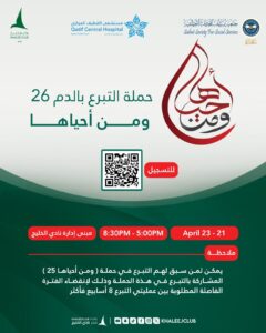 يطلق نادي نادي الخليج بسيهات، بالتعاون مع جمعية سيهات للخدمات الاجتماعية، حملة التبرع بالدم “ومن أحياها 26”، وذلك في إطار تعزيز العمل التطوعي والمسؤولية الاجتماعية وخدمة المجتمع.